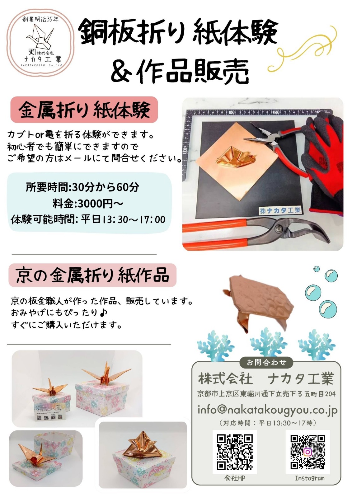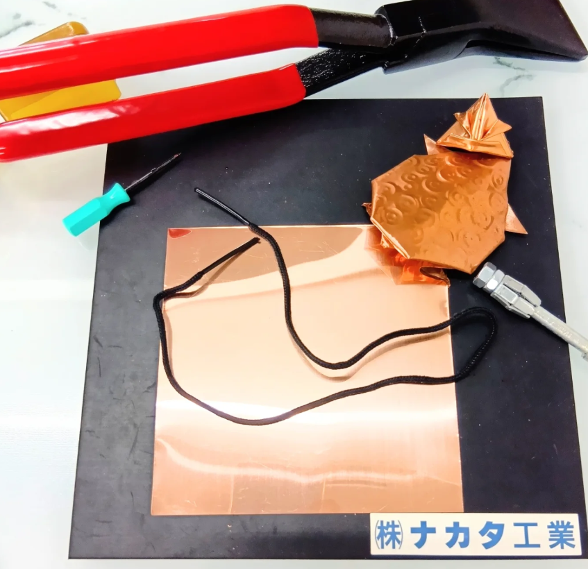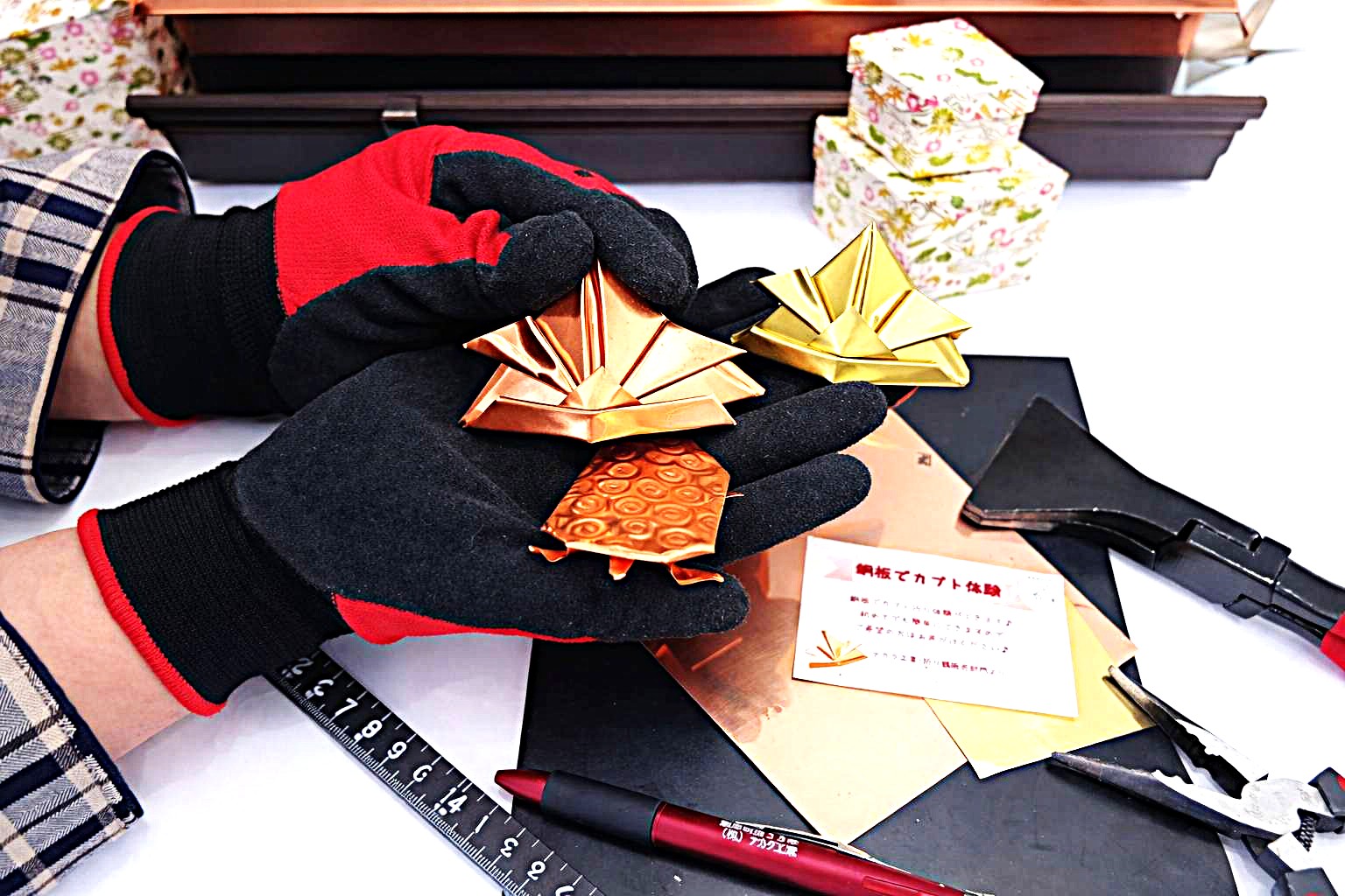 銅板を使った折り紙体験は、