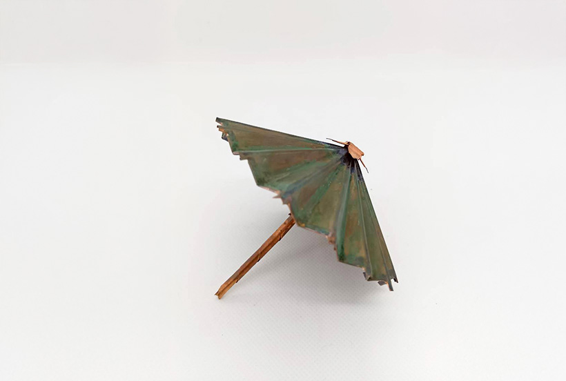金属の板を使った「折り鶴」づくり。